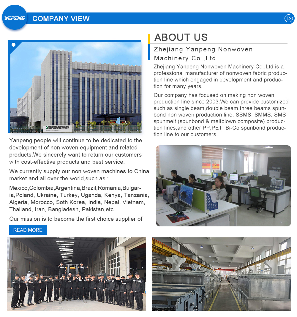 Благодаря тому, что мы успешно установили более 50 комплектов машин для производства нетканых материалов по всему миру, у нас есть богатый опыт установки машин и обучения. Наша команда послепродажного обслуживания поможет людям построить вашу машину и шаг за шагом установить машину. Мы предоставим вам полные монтажные чертежи машины.